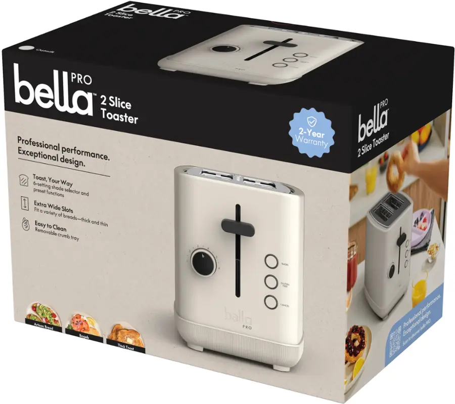 GeneralProduct Name2-Slice Toaster with Extra Wide SlotsBrandbella PROModel Number90231ColorOatmilk