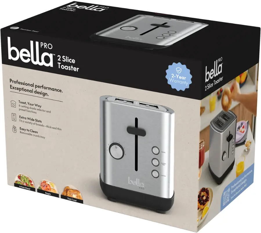 GeneralBrandbella PROModel Number90224Product Name2-Slice Toaster with Extra Wide SlotsColorStainless Steel